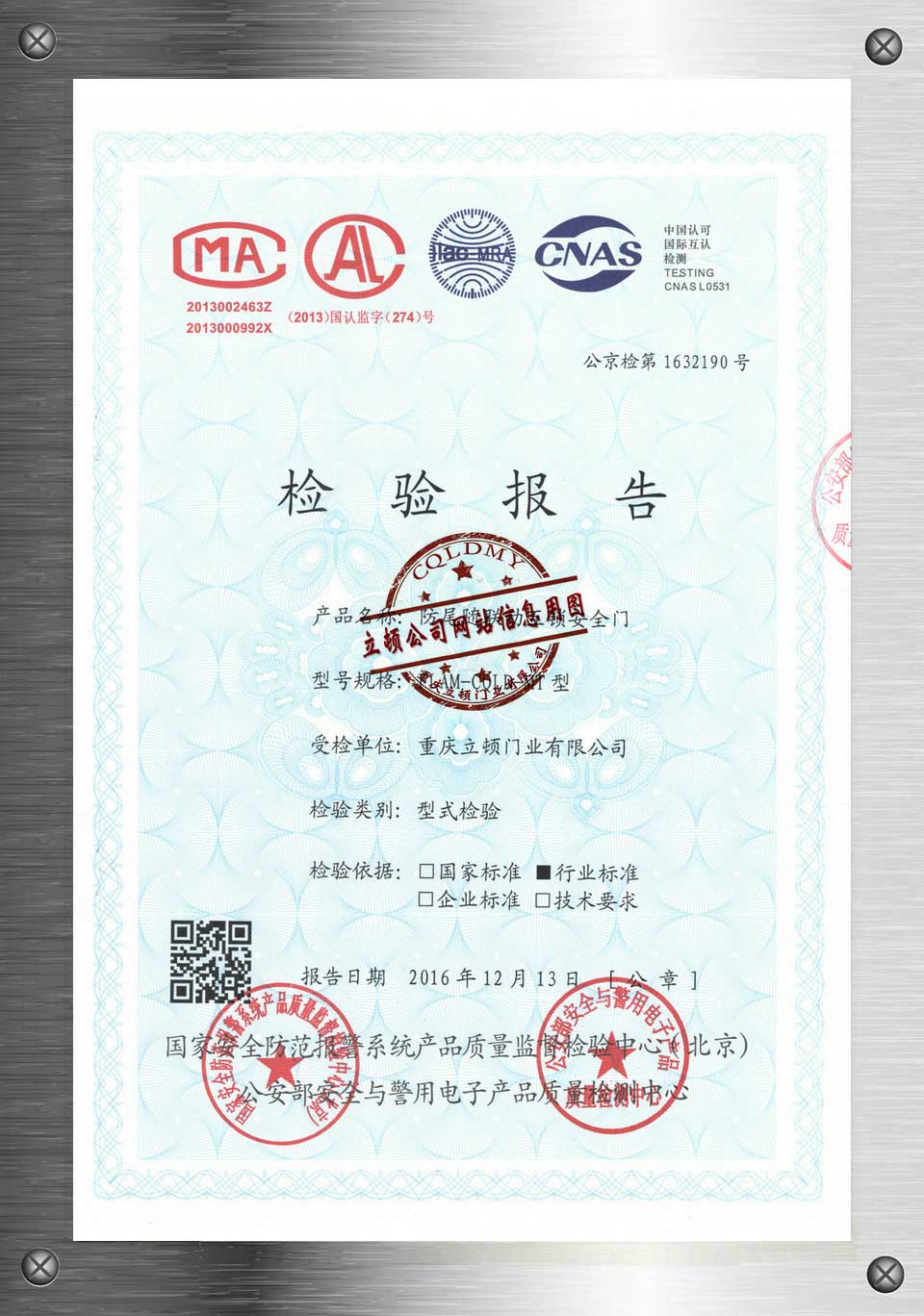 防尾随联动互锁安全门(公京检第1632190)